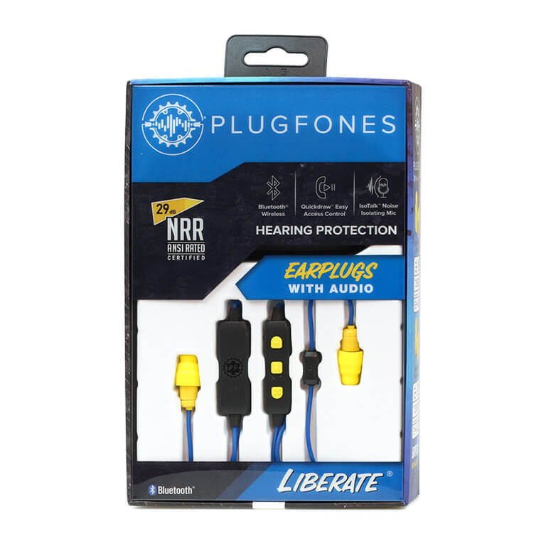 The Plugfones Liberate 2.0 offers a premium bluetooth earplugs with audio experience packed with technology, intuitive functionality, and versatility. Included with the Liberate 2.0 are 2 different types of plugs (4 sets total included), the first is a comfortable silicone plug rated at a 27 NRR (noise reduction rating) and the second is our patented foam 3-tier plug that leads the industry with a 29 NRR (noise reduction rating).
