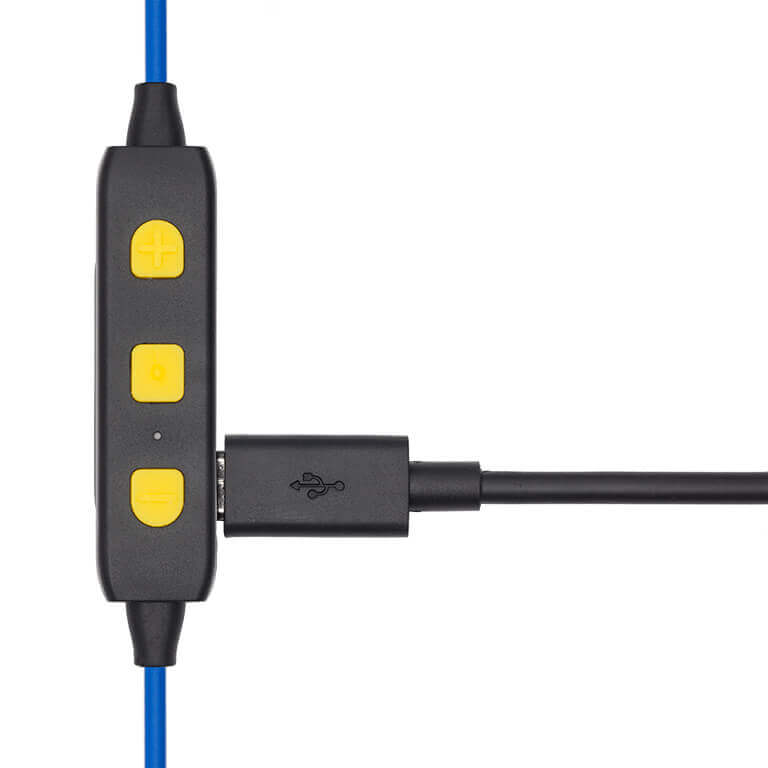 The cable collar is a comfortable addition that helps to keep the Liberate 2.0 in place without any movement but can be removed entirely should you choose that. Also included is a durable zippered case for transport. This model comes in our blue and yellow safety colors and is also offered in a discreet black colorway.